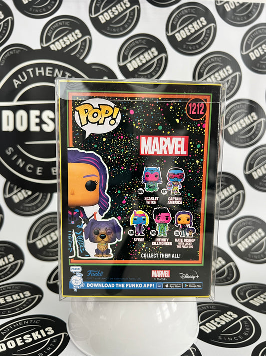 Funko Pop Marvel #1212 Black Light Kate Bishop with Lucky the Pizza Dog Target Exclusive W/Protector